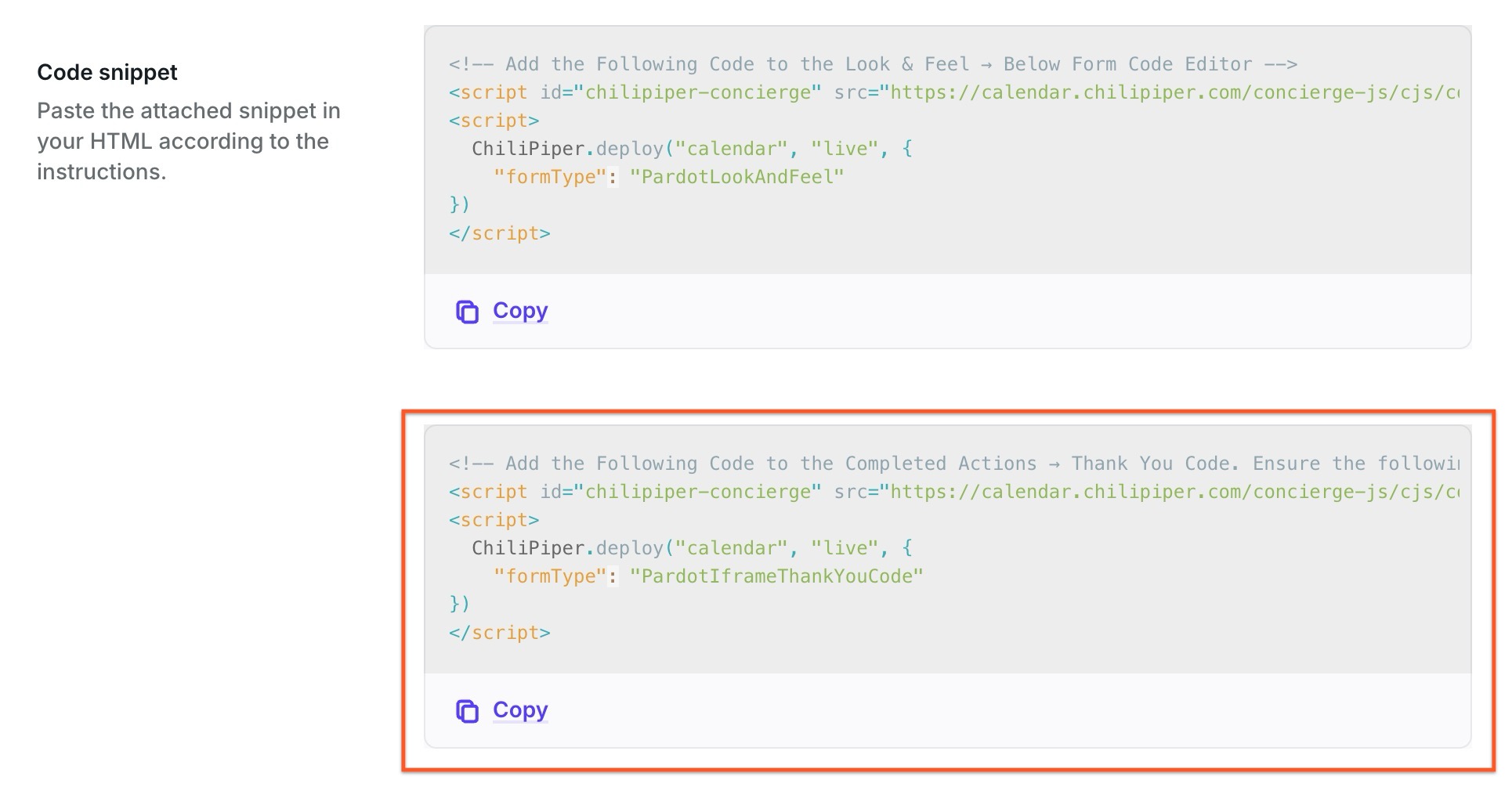 When looking for field names to use, we check the CSS class names first, then placeholders and labels. Sometimes your form labels need to be complex and include some simple instructions, making the label hard to read and use for mapping in Chili Piper. With this implementation, you can specify field names using CSS Class names in Pardot. This will make mapping easier and more predictable.