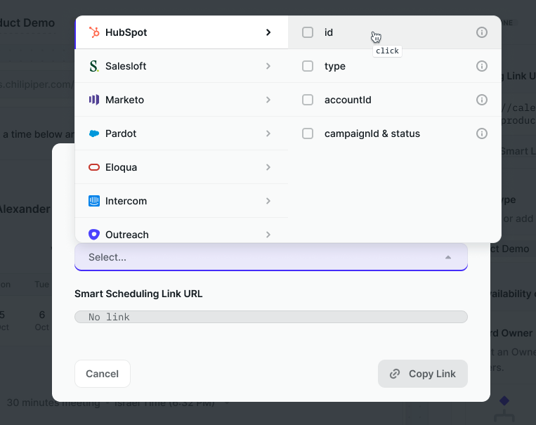 Click here to learn more about the id= parameter and other Smart Parameters provided by Chili Piper, as there are other possibilities to explore, like crediting a Booker while using the Scheduling Link URL.