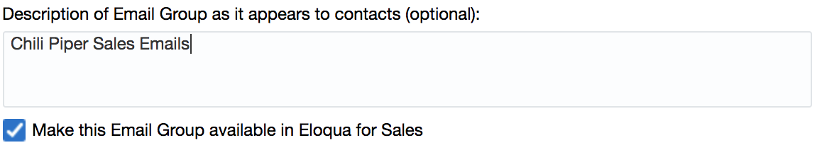 To do this, let's first make sure you have created an "Email Group" in Eloqua with the setting "Make this Email Group Available in Oracle Eloqua For Sales" enabled.