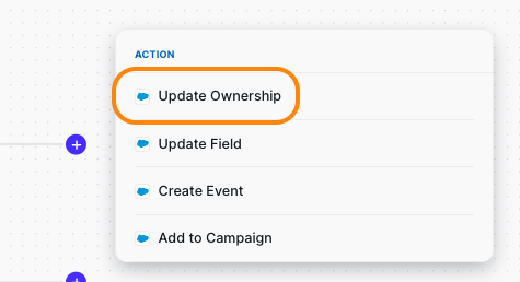 Note that it is crucial to have a Create Event node in your Concierge Router's Flow Builder to allow Chili Piper to create Events: - Set a new Lead Owner based on the “Assignee” of the Meeting by adding an Update Ownership node in your Router's Flow Builder: