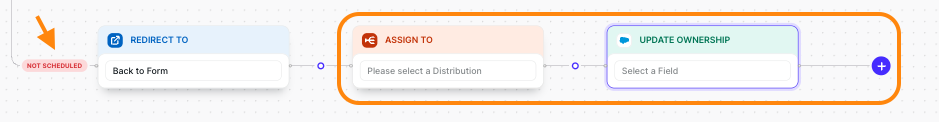 - Optionally, send an email and/or Slack alert to the newly distributed Lead/Contact Owner to alert them that the form was filled, but no meeting was booked. You can do that by adding a Send Notification node to your flow, always after the Assign To and Update Ownership nodes.