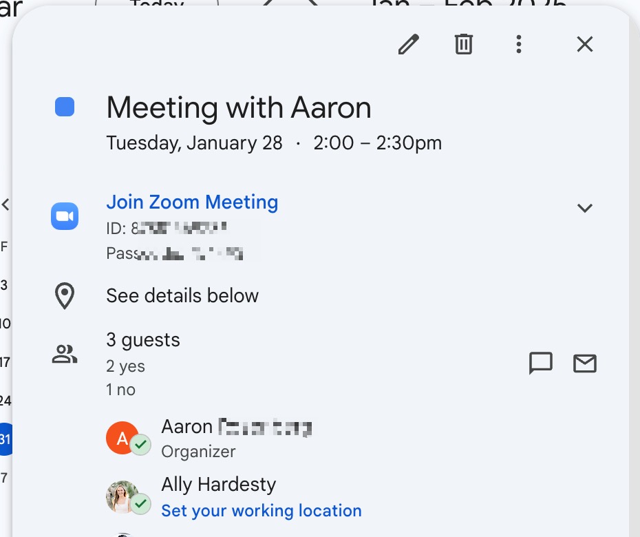 For example, the meeting title should include "Meeting with [Assignee]." If, for some reason, we don't have Aaron as the assignee, we will fall back on Aaron and fill in a name in the title instead of showing nothing.