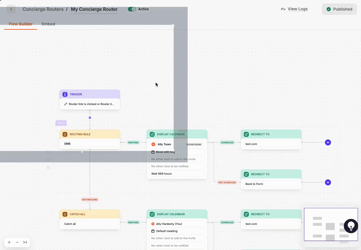 - i.e. if "Existing Customer?" = "Yes" → Load the Existing Customers Router to schedule with Account Managers. If "Existing Customer?" = "No" → Load the New Customers Router to schedule with your Sales team.