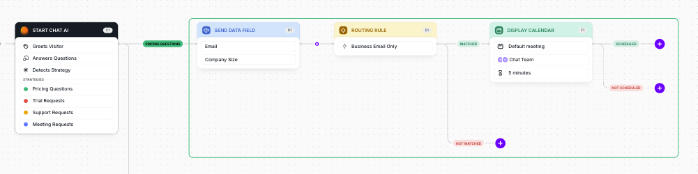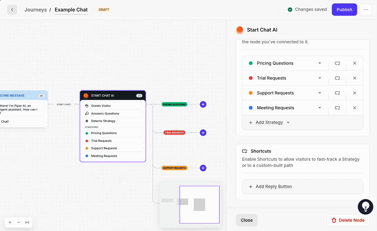 💡For example, put Chat AI at the start of a “Request Demo” Journey so it can qualify and route all demo requests automatically. Or start at the beginning of the journey, where every visitor begins with Chat AI.