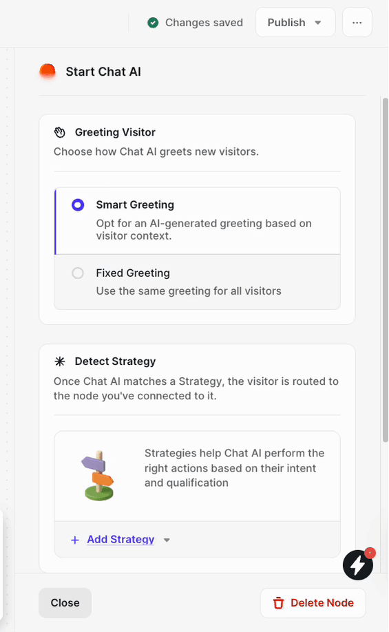 Once your Strategies and actions are in place, publish your Journey. Chat AI will immediately begin engaging visitors in natural conversations and routing them to the most relevant outcomes.
