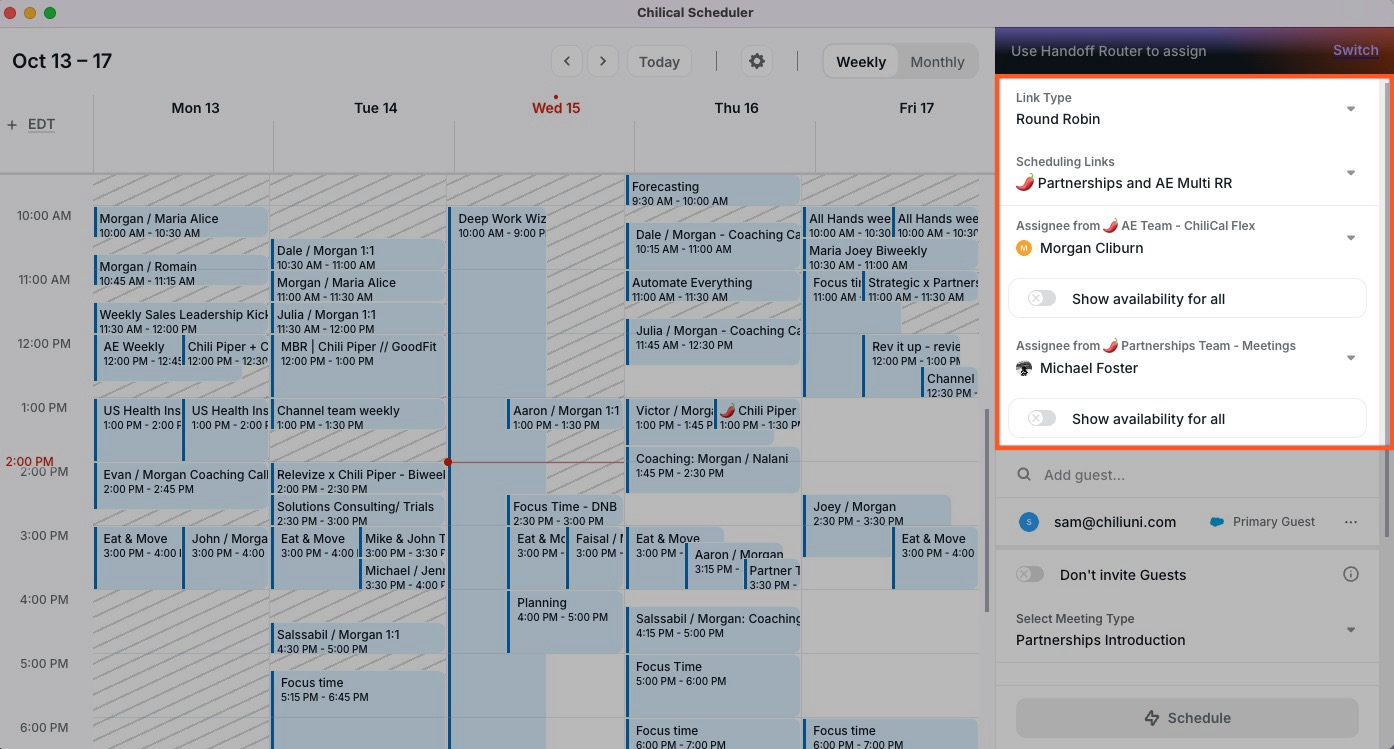 Multi-Round Robin ensures that every critical role is included in the meeting without manual coordination. Instead of checking calendars across multiple teams or rescheduling when the right people are unavailable, the system automatically finds times that work for all required participants.