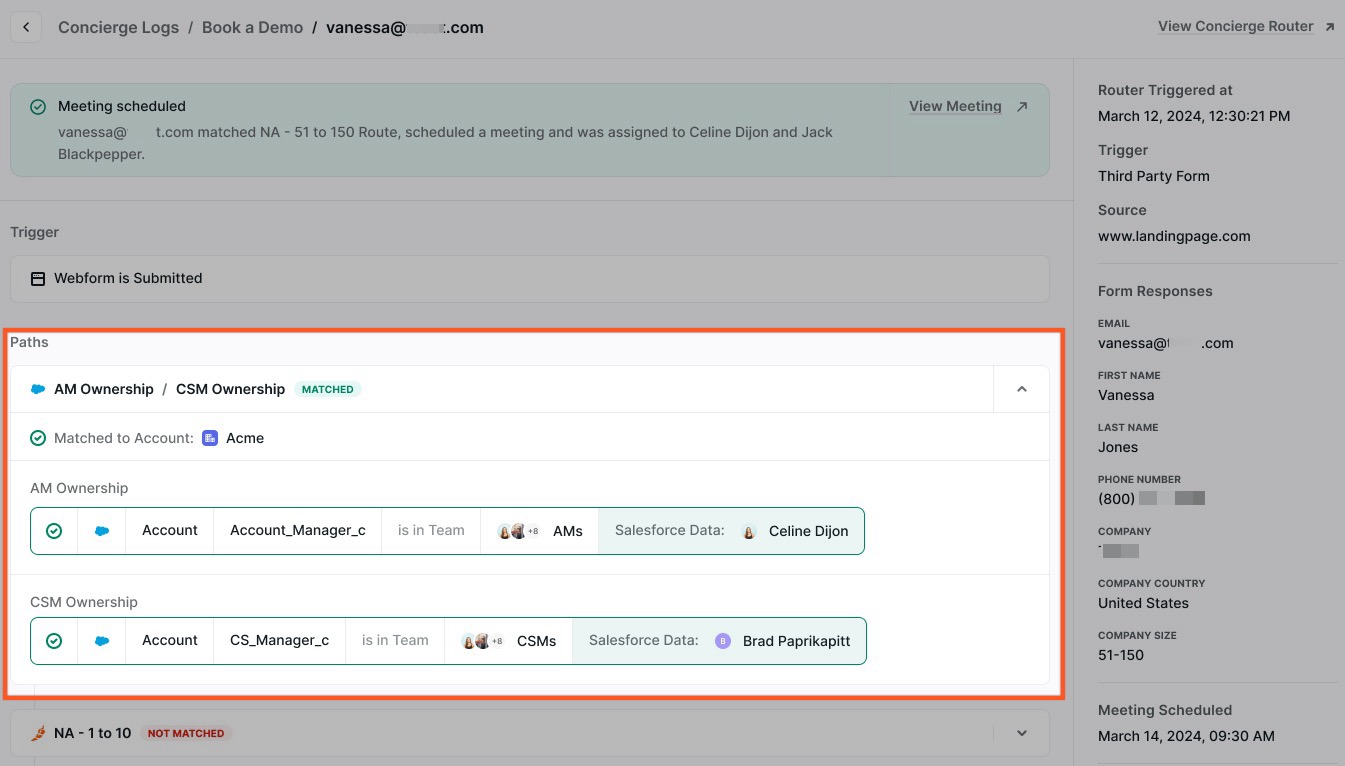 When matched with double ownership, you will be able to see who matched and why based on your rules. It will also include whose calendar was displayed.