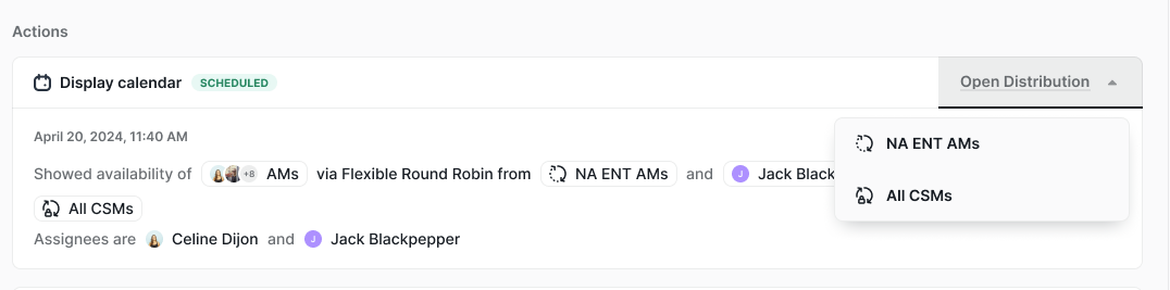 When assigned via multiple round robins, you will see whose calendar was displayed and from which Distributions.