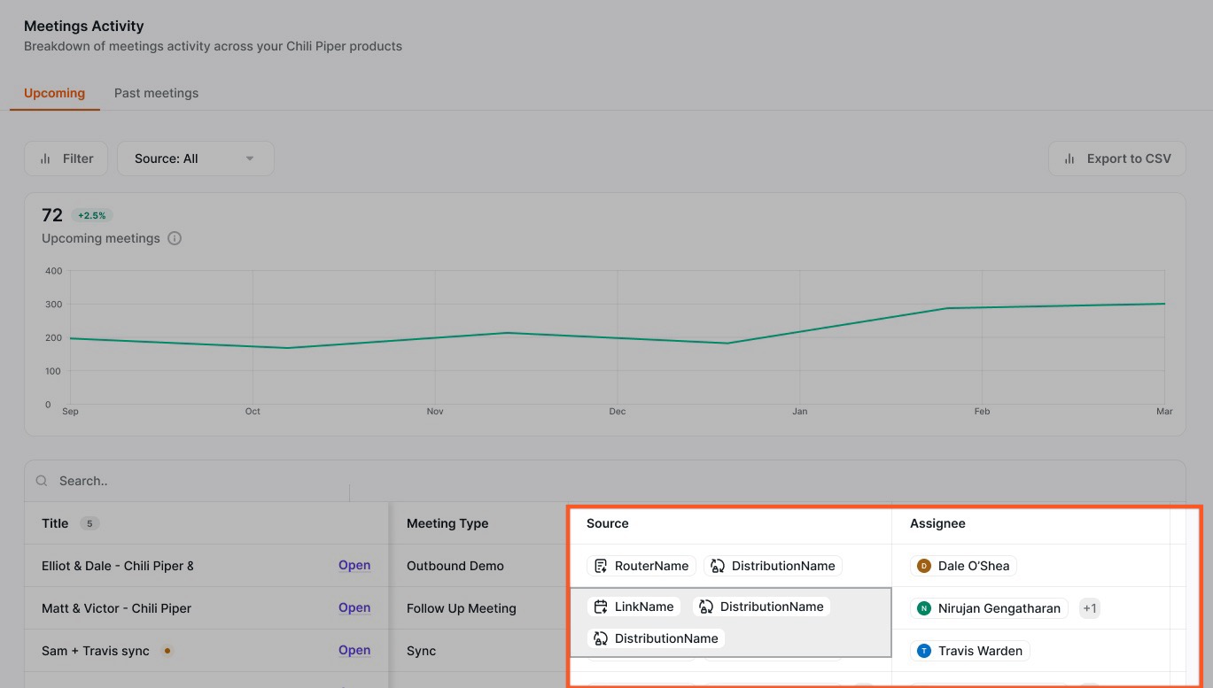 For Handoff and ChiliCal assignments, you can view the Distributions and Assignees in the Meeting Activity.