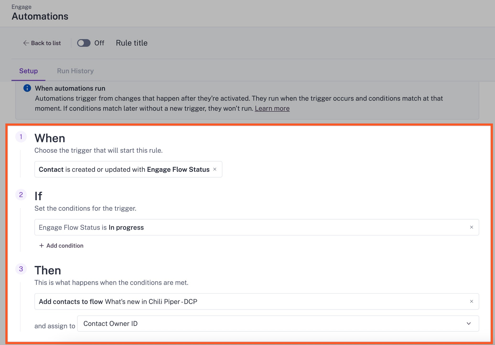 - In the example below, we are using Gong Engage automations to trigger an email flow from this field update.