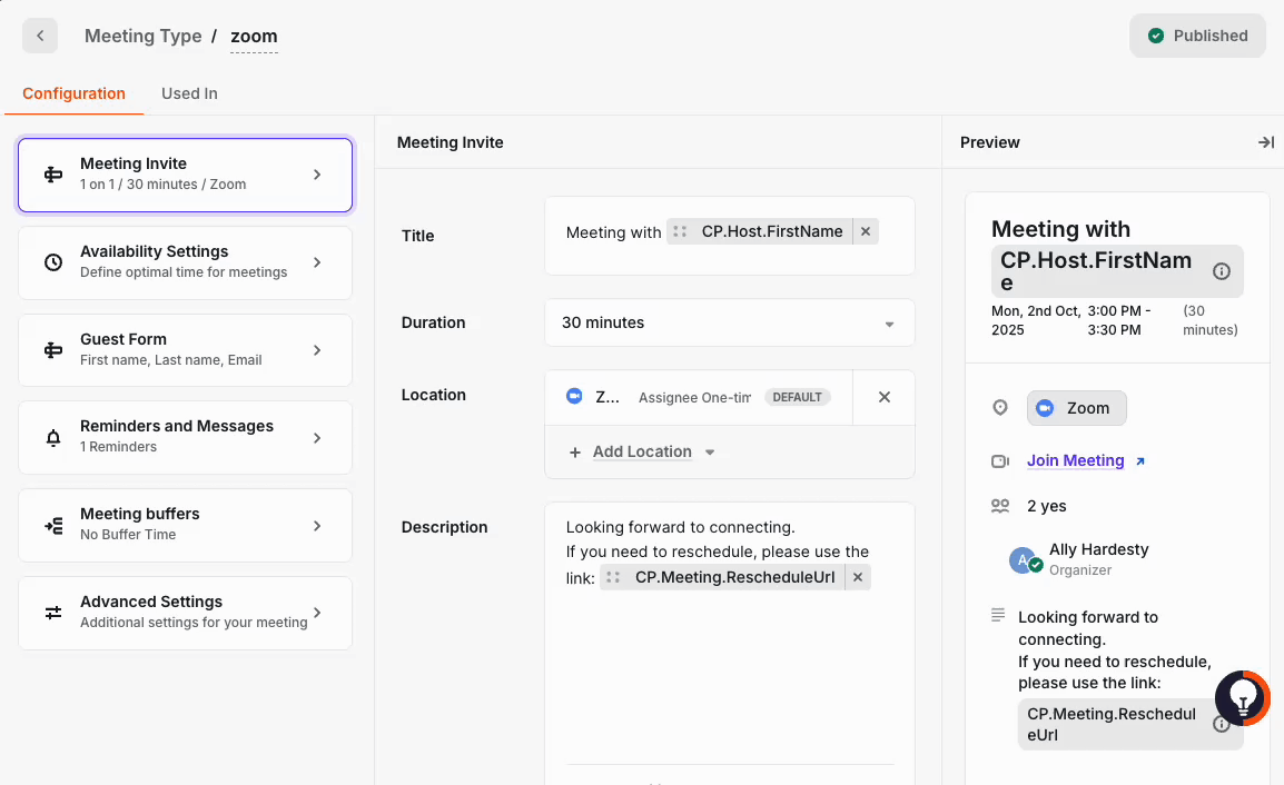 Define any meeting length, not just presets. This Aligns scheduling to true needs (e.g., 12-minute consults, 45-minute demos), improving utilization and guest fit.