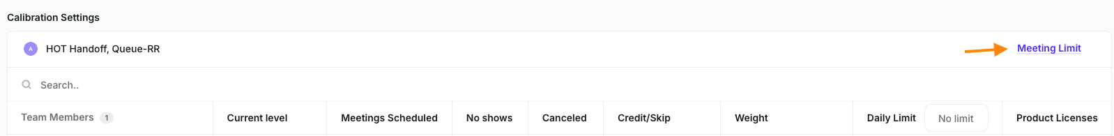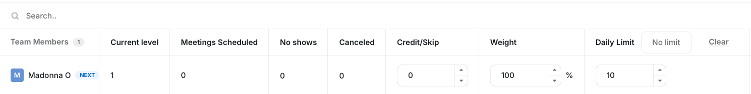 Once done, the Limit column will be enabled so you can set the limit per user. In the example below, we set a Daily limit of 10 meetings for Madonna: