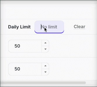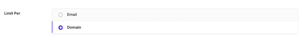 You can set this limit per Email (e.g., john@acme.com) to set the limit per individual user or Domain (e.g., @acme.com) to set a broader limit, covering all users from the exact domains.