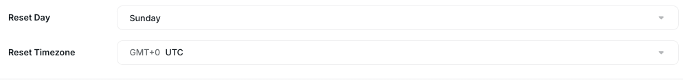 Below, you can define when and at what Timezone the Limit will be reset. For example, if you work with Weekly Limits, you can define which day of the week the Limit will reset. For Daily ones, the specific Hour of the day will be reset, and so on.
