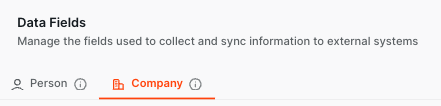 You can also find Data Fields already created by Chili Piper in the Company Data Fields page, which you can select in the header. Information related to Companies/Accounts is stored in Company Data Fields.