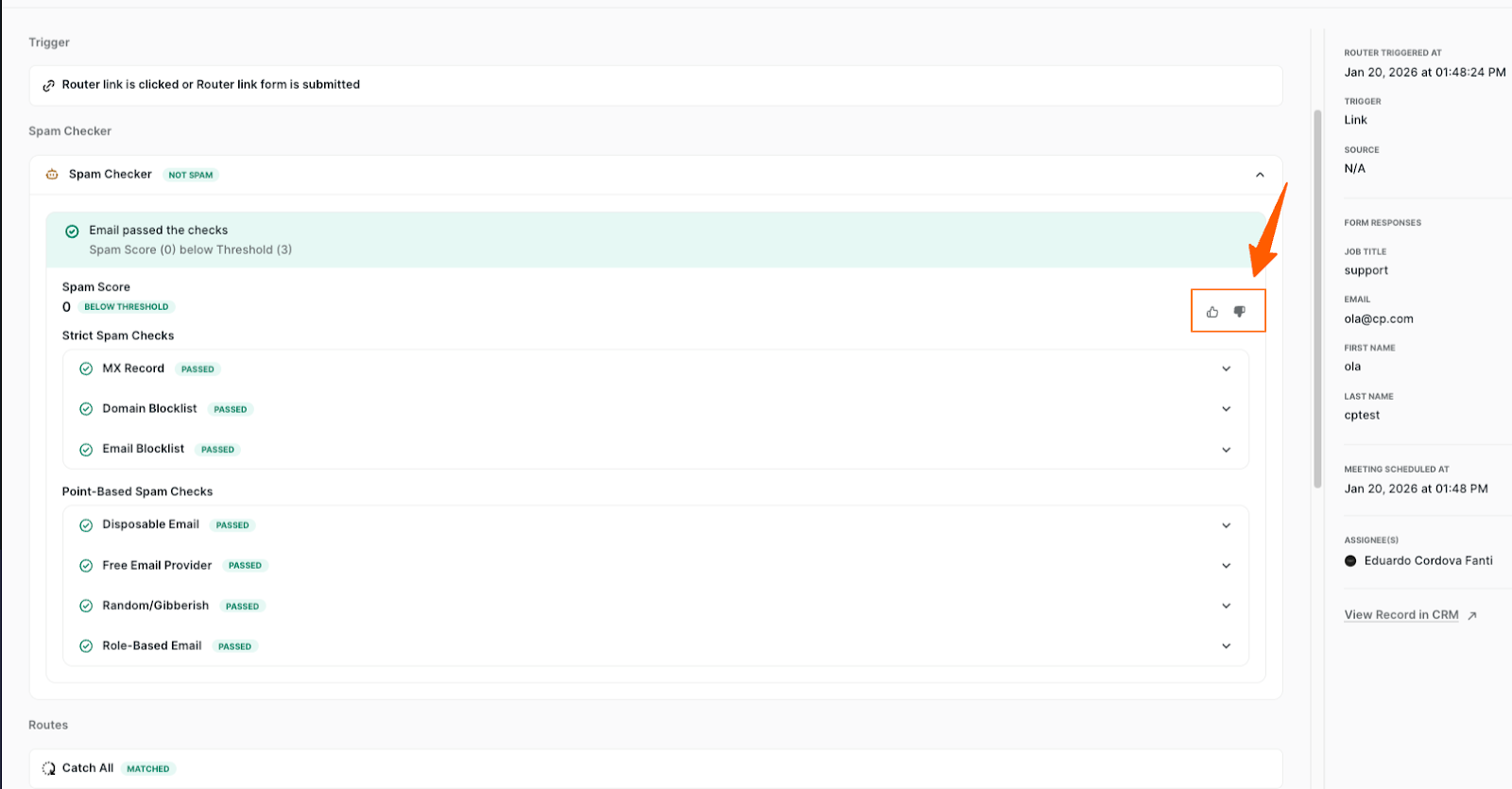 The Update / Create Record node is now allowed on the Spam path, enabling Spam Score to be written to CRM records