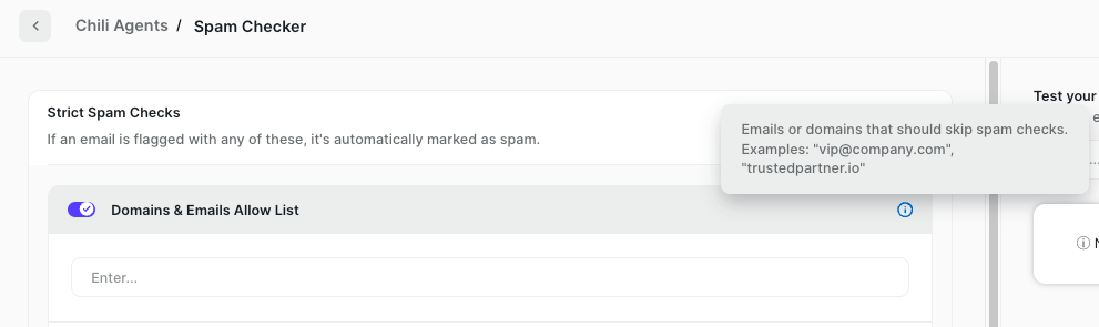 Admins can now add email addresses or domains to an allowlist, and those will always be marked as non-spam. When an email or domain is on the allowlist, all other checks will be marked as “skipped” in the logs because they will not be evaluated.