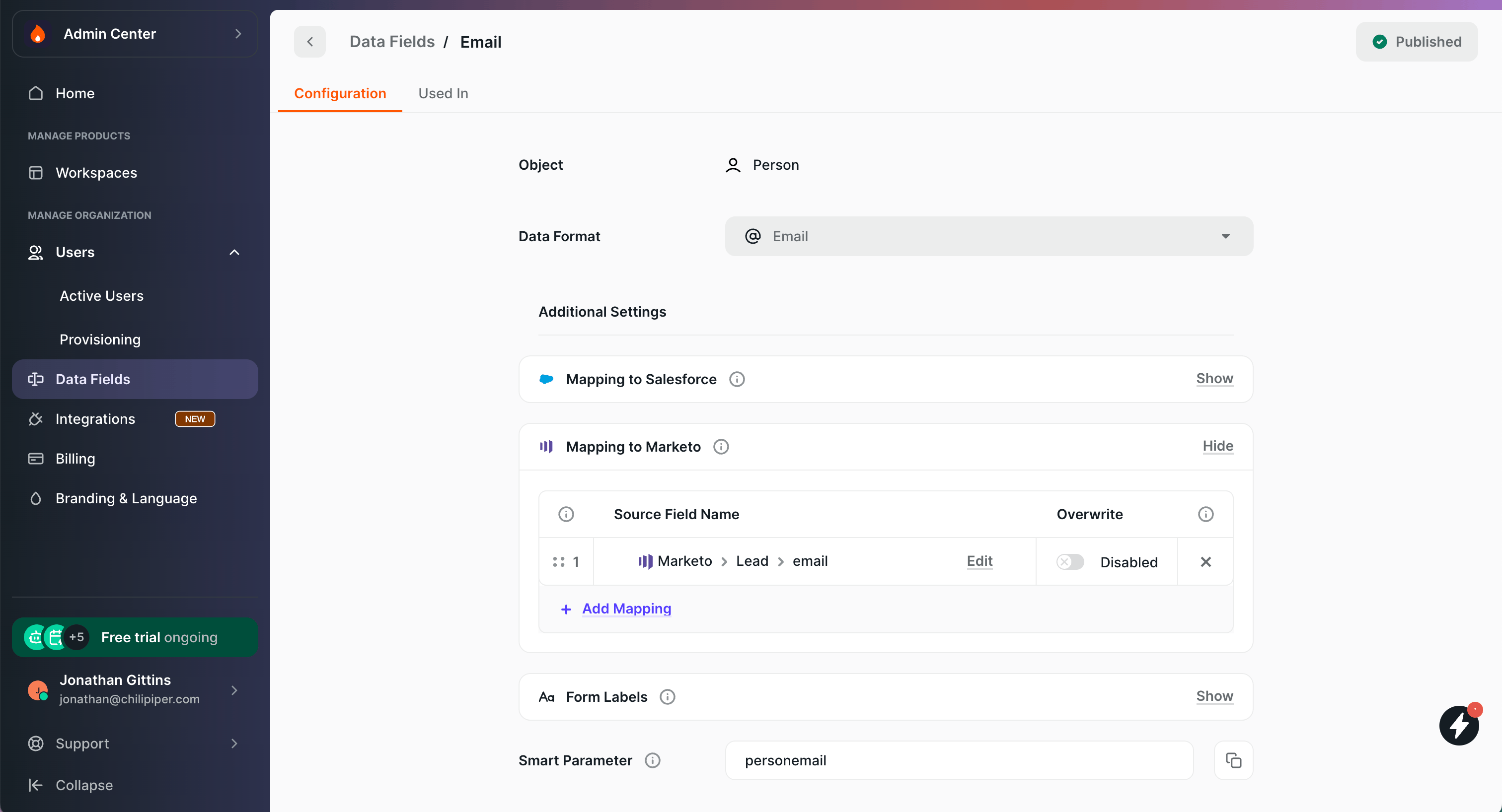 - Go to Admin Center > Data Fields.