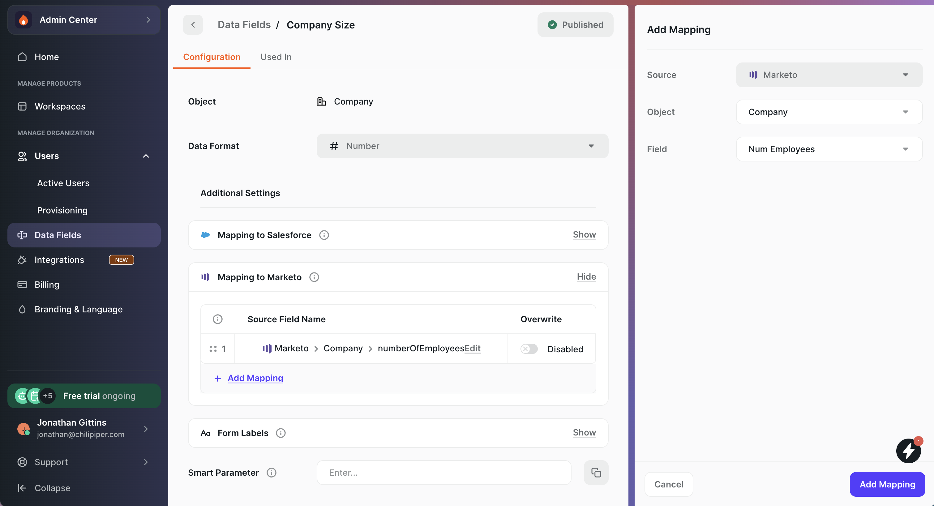 - Field – Select the Marketo field to map to.