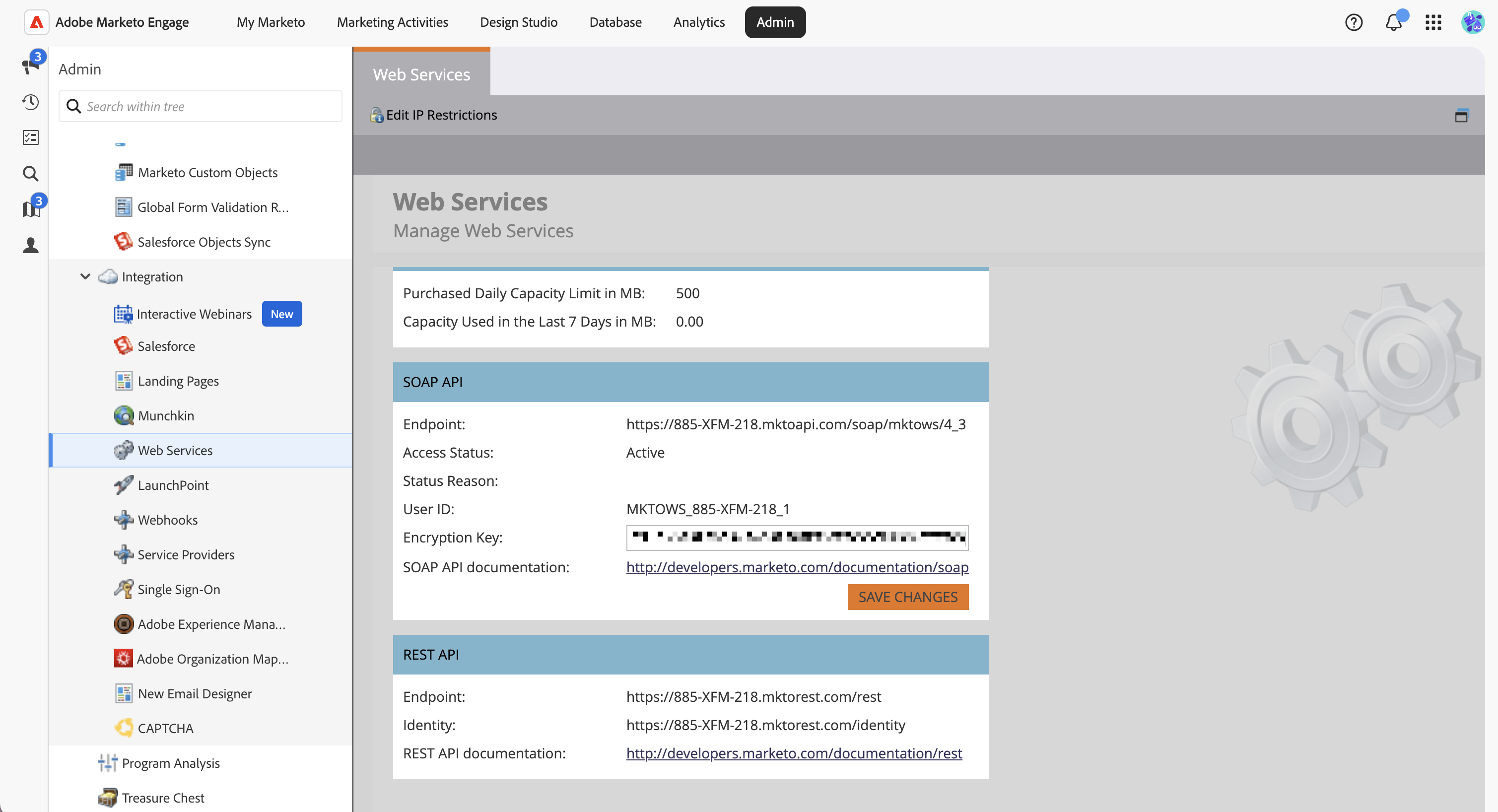 - In Marketo, go to Admin > Integration > Web Services.