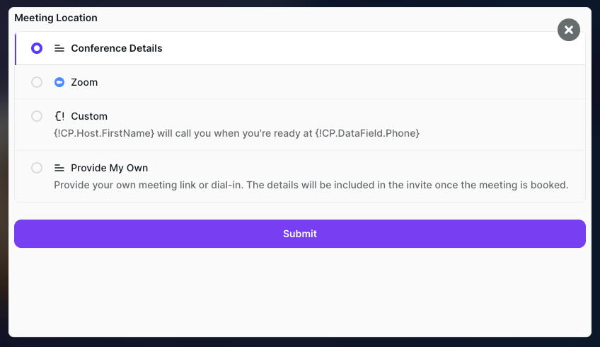 On form submit the concierge scheduler loads and it doesn't load the data fields in the custom meeting location. Please use test in the name and email so it does create a lead in our actual CRM.